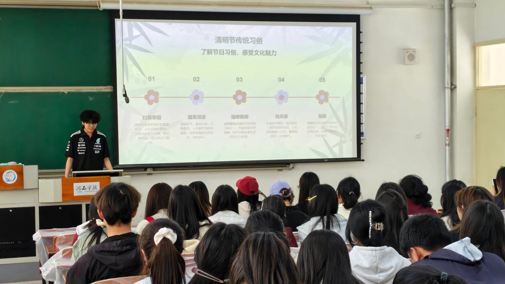 活动现场,同学们通过历史典故与民俗故事的讲解了解了清明节的历史渊源、青团作为时令祭品的文化内涵以及扫墓祭祖、踏青插柳等传统习俗的现代传承意义。在专业老师的指导下,同学们动手实践,从和面、准备馅料到包馅、蒸煮,每一步都认真细致,展现了扎实的专业功底和实践创新能力。活动还设置了青团谜语竞猜和蒙眼试吃猜馅料等趣味小游戏,实现传统文化与青春创意的有机融合。